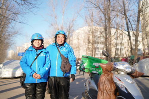师建廷和张焕荣是达达快送的一对夫妻骑手,他们跑单已经7年多了。今年春节,他们打算留在北京继续跑单。这是他们留京配送的第四个春节。