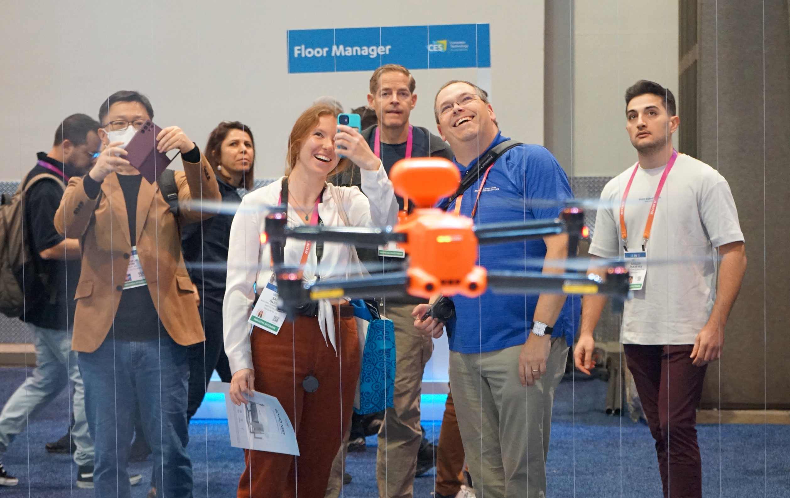 1月6日,人们在美国拉斯维加斯消费电子展上参观深圳道通智能航空技术股份有限公司的无人机。(新华社发,曾慧摄)