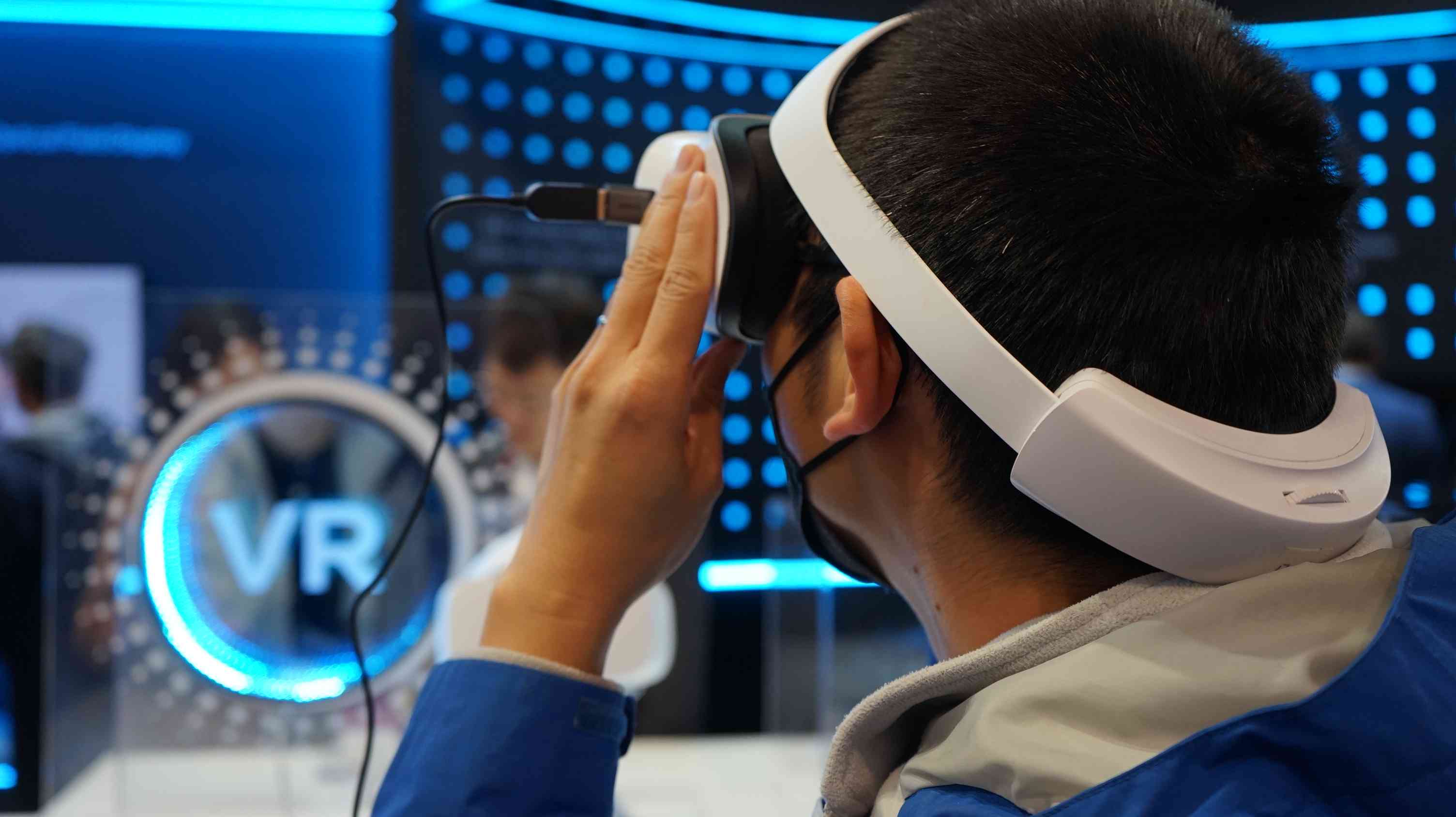 1月6日,一名参观者在美国拉斯维加斯消费电子展上体验TCL的虚拟现实产品。新华社发(曾慧摄)